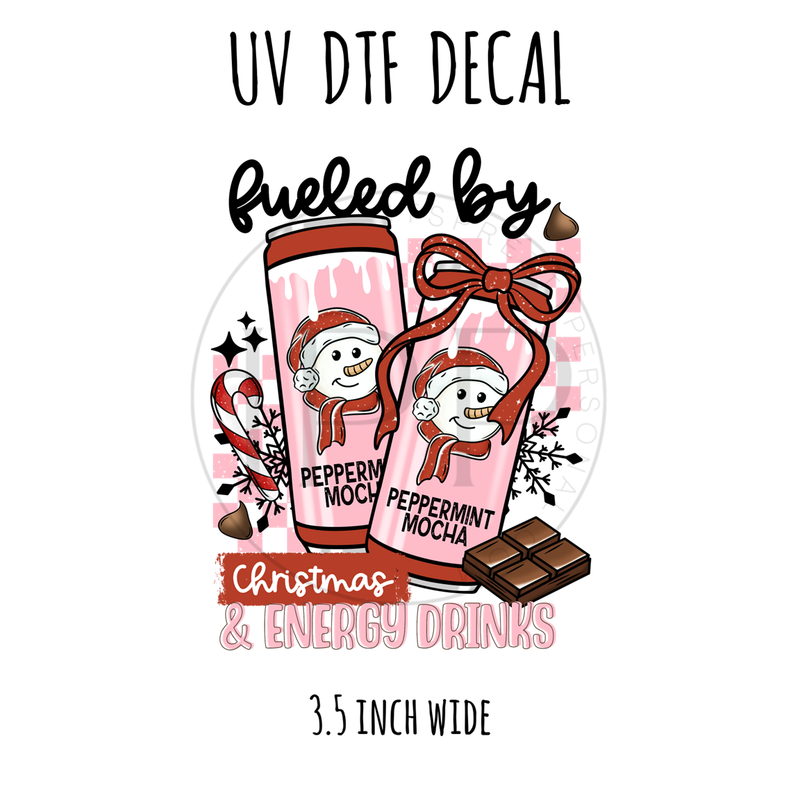 #640 Christmas and Energy Drinks Snowman - 3.5 inch wide UV DTF decal