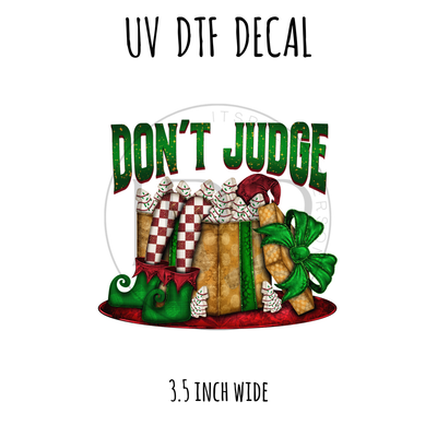 #665 Tree Cake Don't Judge Elf Giftbox- IPP EXCLUSIVE- 3.5 inch wide UV DTF decal
