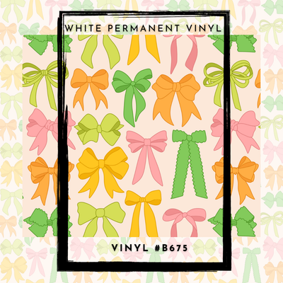 #B675- Playful Doodle Non-Traditional Green Pink Orange Bows- 12x12 Pattern Vinyl