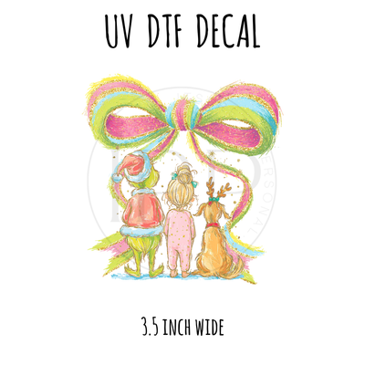 #659 Grinchy Pastel Christmas Bow- 3.5 inch wide UV DTF decal
