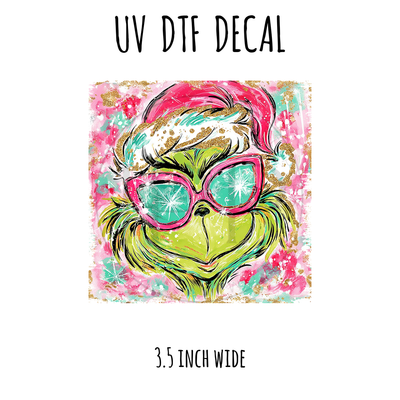 #660 Grinchy Mean One Brushstroke Glasses- 3.5 inch wide UV DTF decal