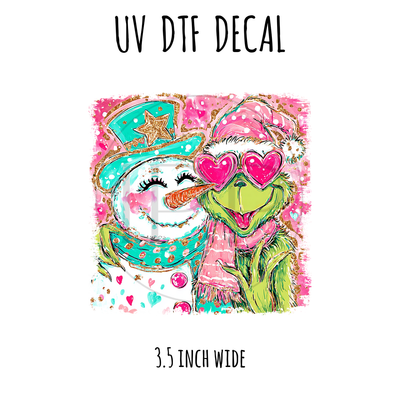 #661 Grinchy Mean One Brushstroke Snowman- 3.5 inch wide UV DTF decal