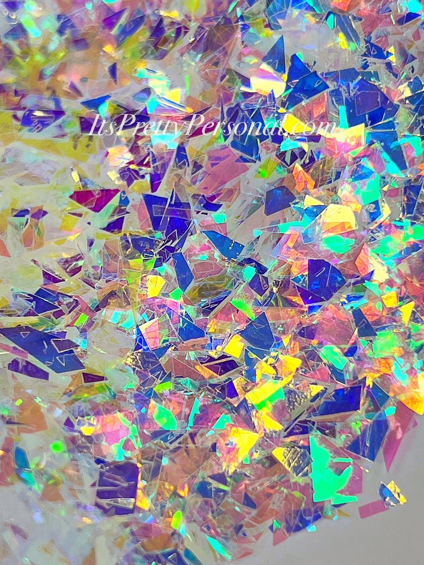 Each shaker is packed with large, shattered polyester film opal flakes that reflect light in the most dreamy, multidimensional way — think holographic shards, icy opal flashes, and iridescent confetti brilliance all in one.
