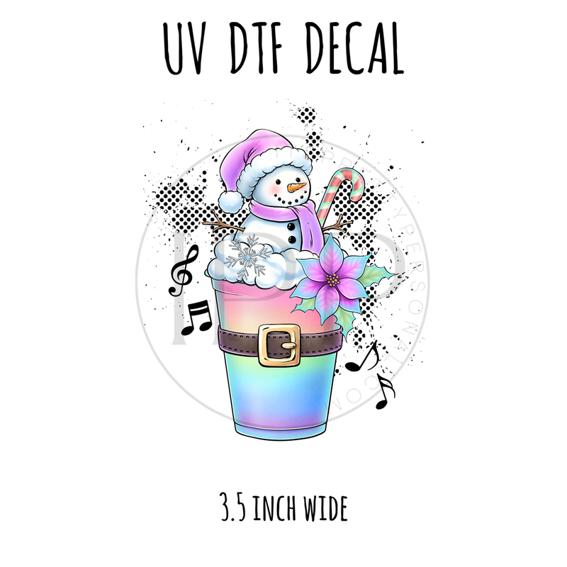 #557 Pastel Christmas Snowman Drink- 3.5 inch wide UV DTF decal