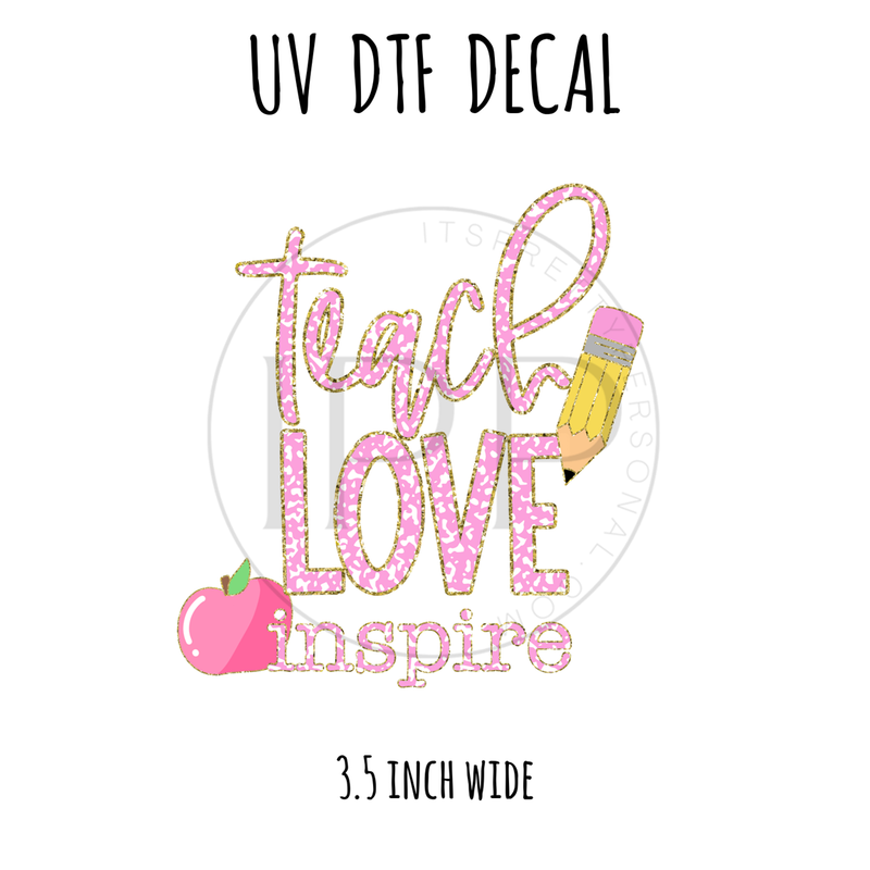 #238-Teach Love Inspire- IPP TEACH-UNIQUELEI Exclusive- 3.5 inch wide UV DTF decal