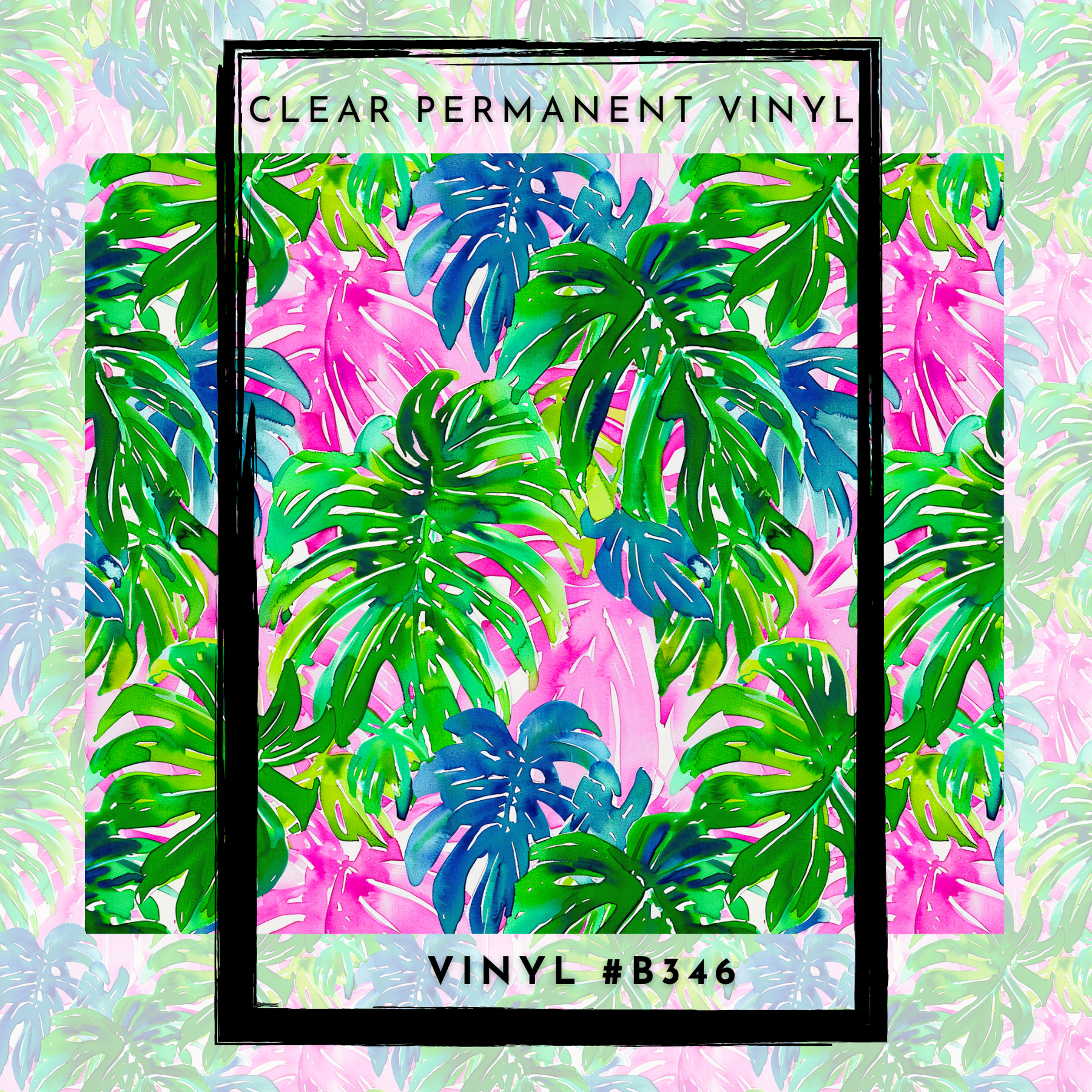 #B346- CLEAR Pink + Green Tropical Monstera- 12x12 Pattern Vinyl