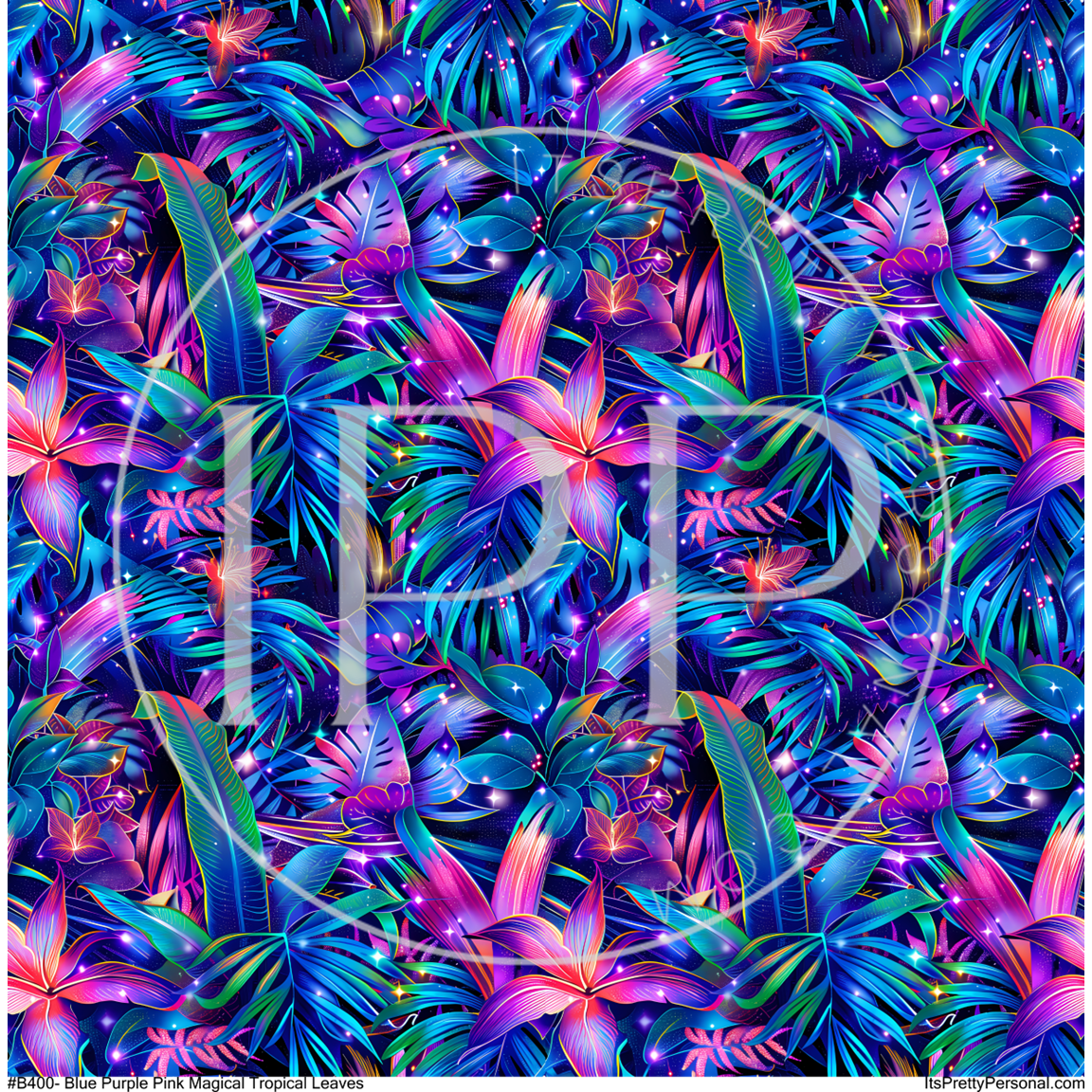 #B400-Blue Purple Tropical Floral - 12x12 Pattern Vinyl