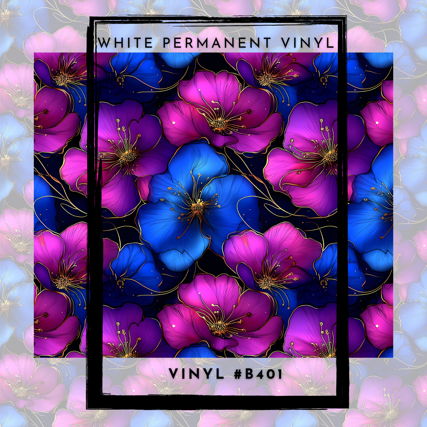 #B401-Blue Purple Floral - 12x12 Pattern Vinyl