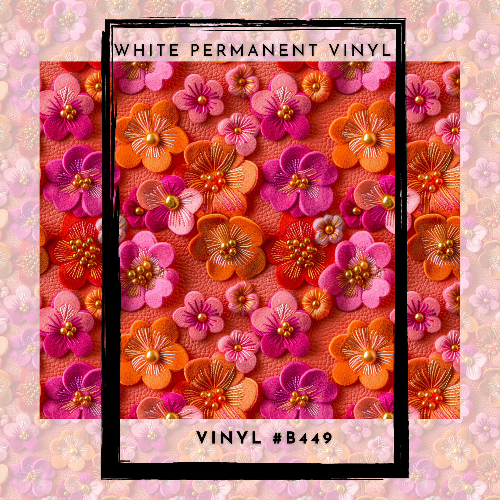 #B449- Pink Orange Faux leather floral- 12x12 Pattern Vinyl