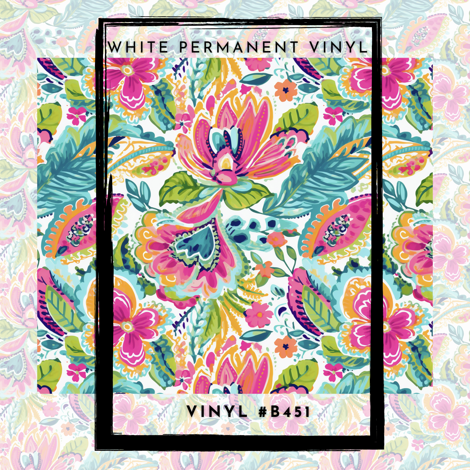 #B451- Pink Teal Orange Floral- 12x12 Pattern Vinyl