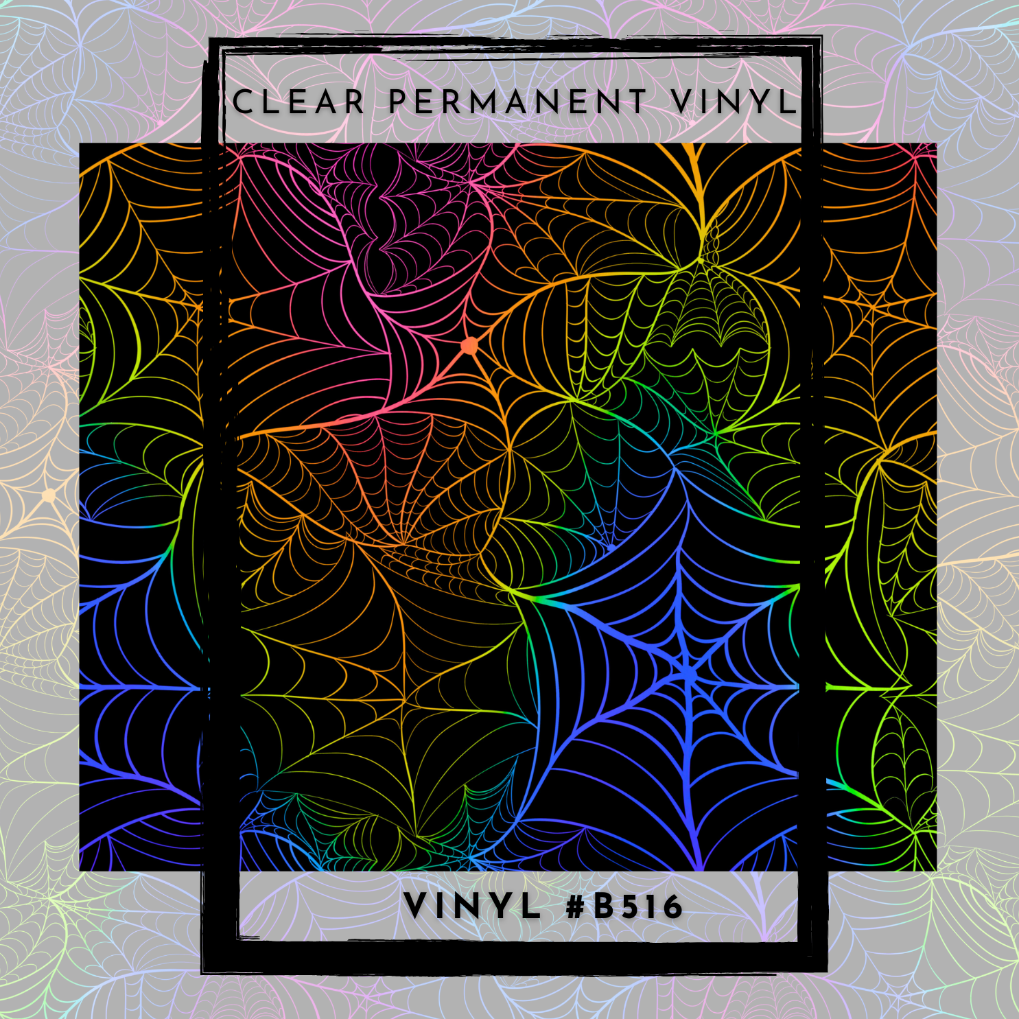 #B516- CLEAR Spooky Rainbow Spider Web- 12x12 Pattern Vinyl