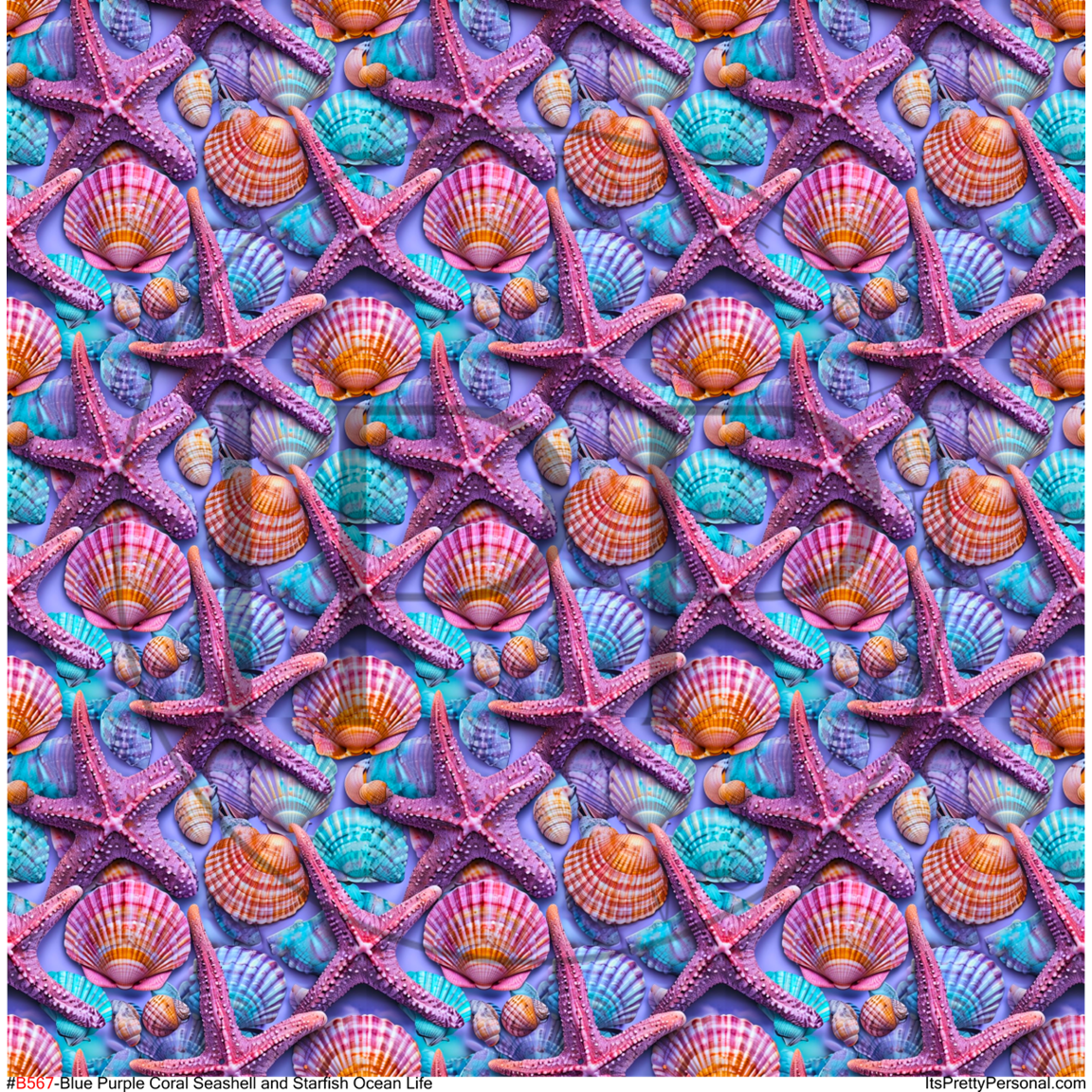 #B567- Blue Purple Coral Seashell and Starfish Ocean Life- 12x12 Pattern Vinyl