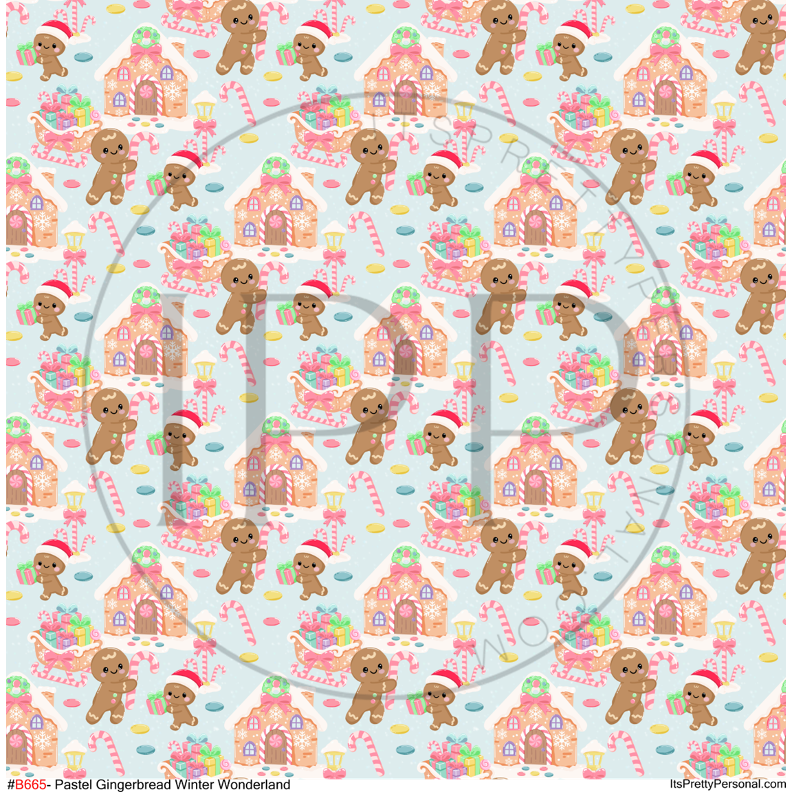 #B665 Pastel Gingerbread Candy Winter Wonderland- 12x12 Pattern Vinyl