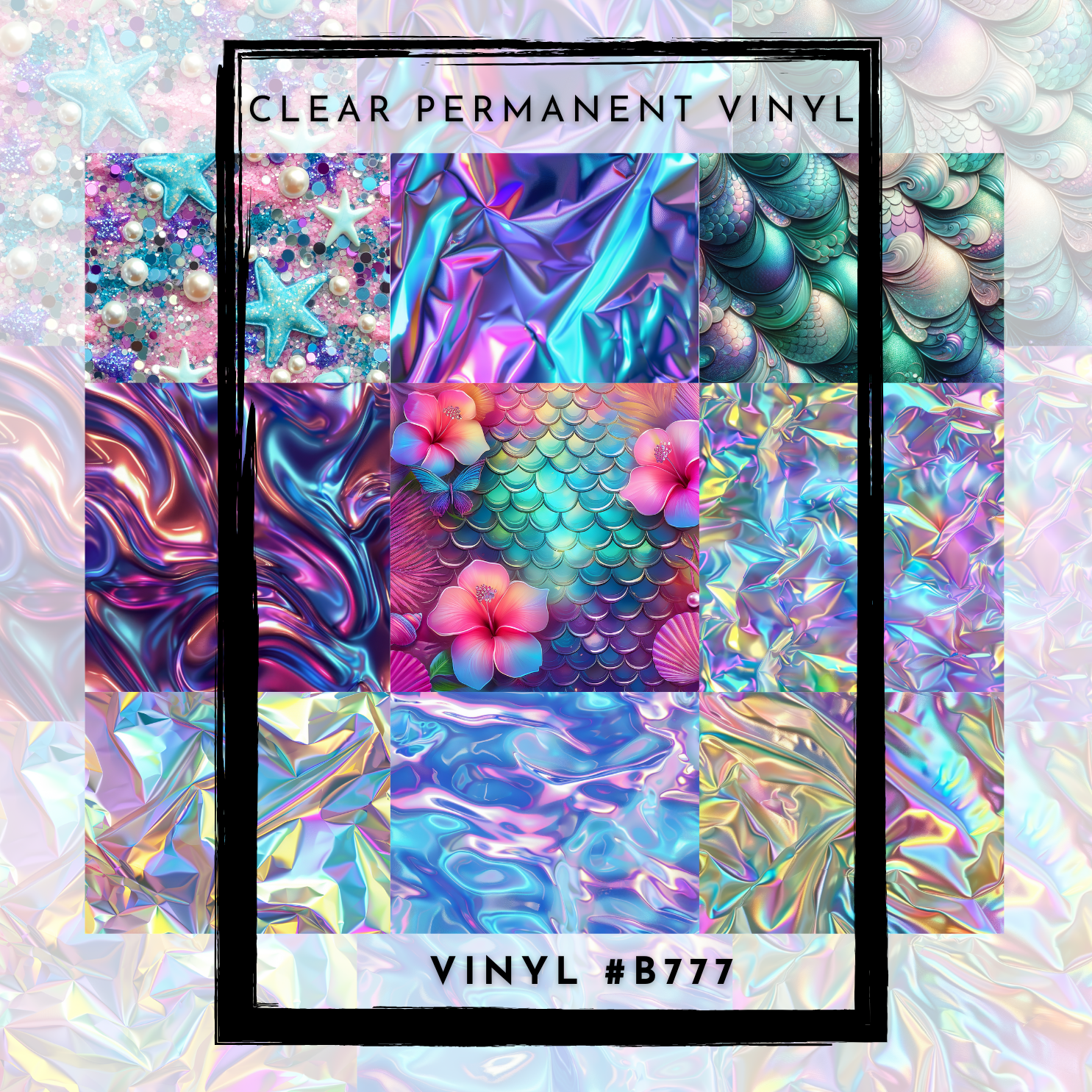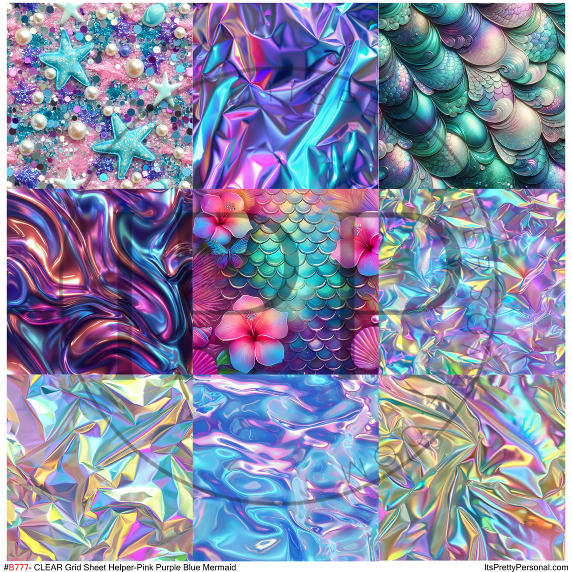 #B777-CLEAR Small Scale Ornament Grid Helper-Pink Purple Blue Mermaid-12x12 CLEAR Pattern Vinyl