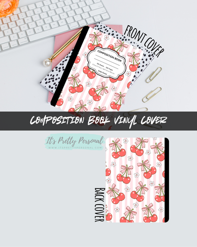 #B524 Composition Book Vinyl Covering- Front + Back- Cherry Bows