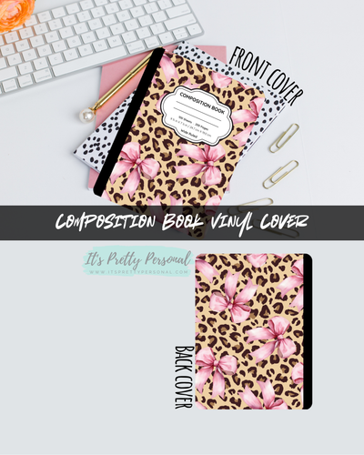 #B525 Composition Book Vinyl Covering- Front + Back- Leopard Bows