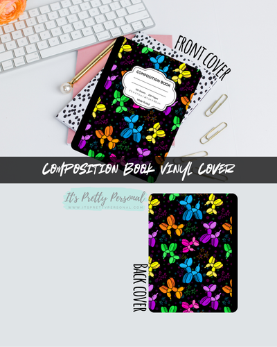 #B527 Composition Book Vinyl Covering- Front + Back- Neon Balloon Dogs