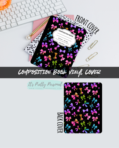 #B528 Composition Book Vinyl Covering- Front + Back- Neon Bows