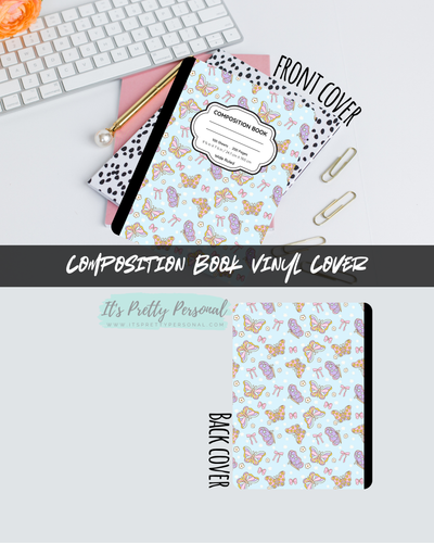 #B537 Composition Book Vinyl Covering- Front + Back- Butterfly and Bows