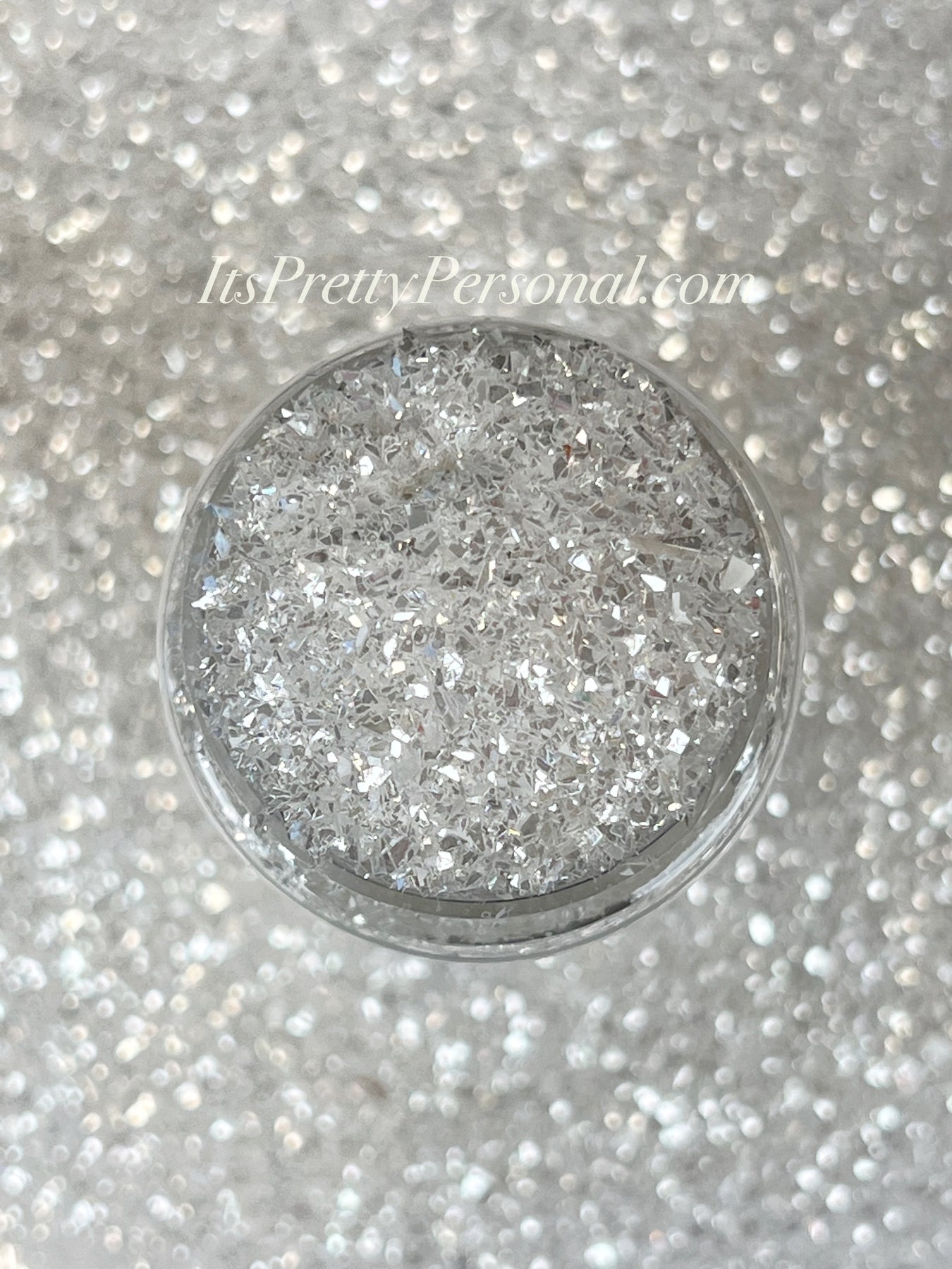 Meet SHATTERED, the ultimate glitter blend that’s sassy but classy. Featuring the perfect mix of crisp white sparkle with a stunning silver shift, this polyester glitter brings an elegant shine to any project while still making a bold statement.