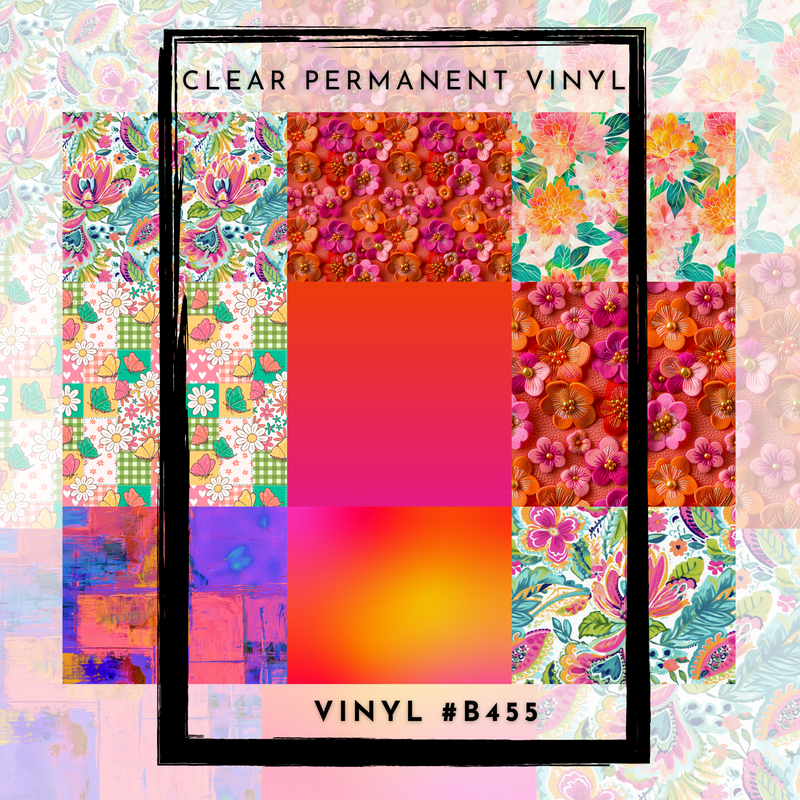 #B456-CLEAR Small Scale Ornament Grid Helper-Pink Orange Teal Floral - 12x12 CLEAR Pattern Vinyl