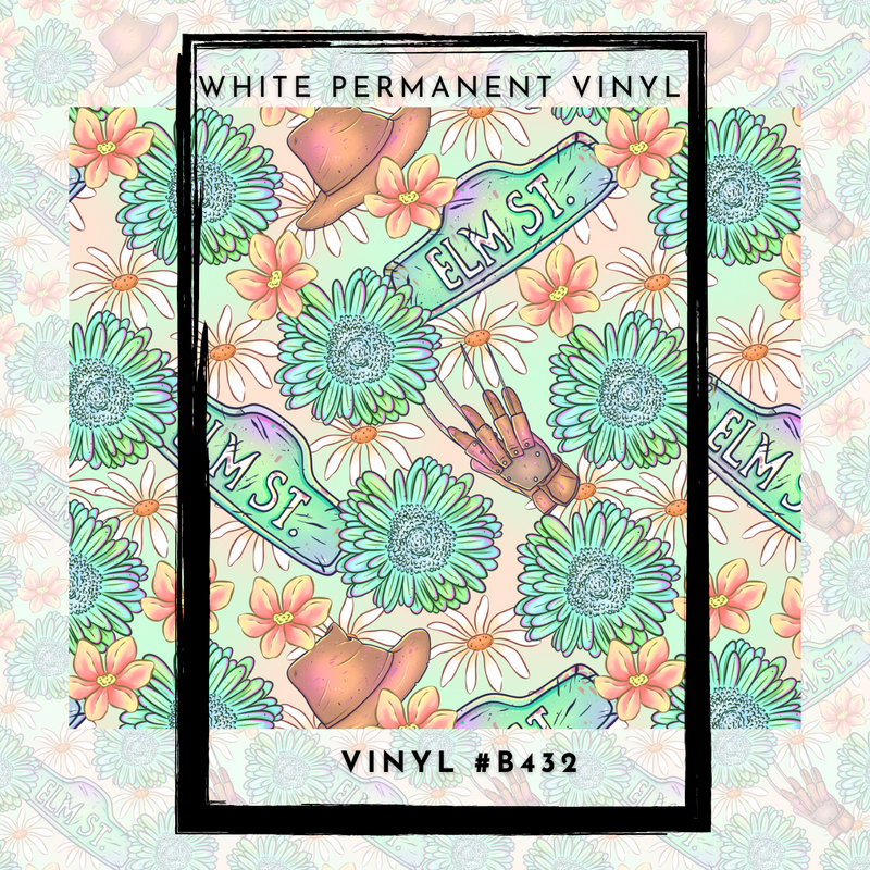 #B432- Pastel Floral Horror Freddy Elm Street- 12x12 Pattern Vinyl