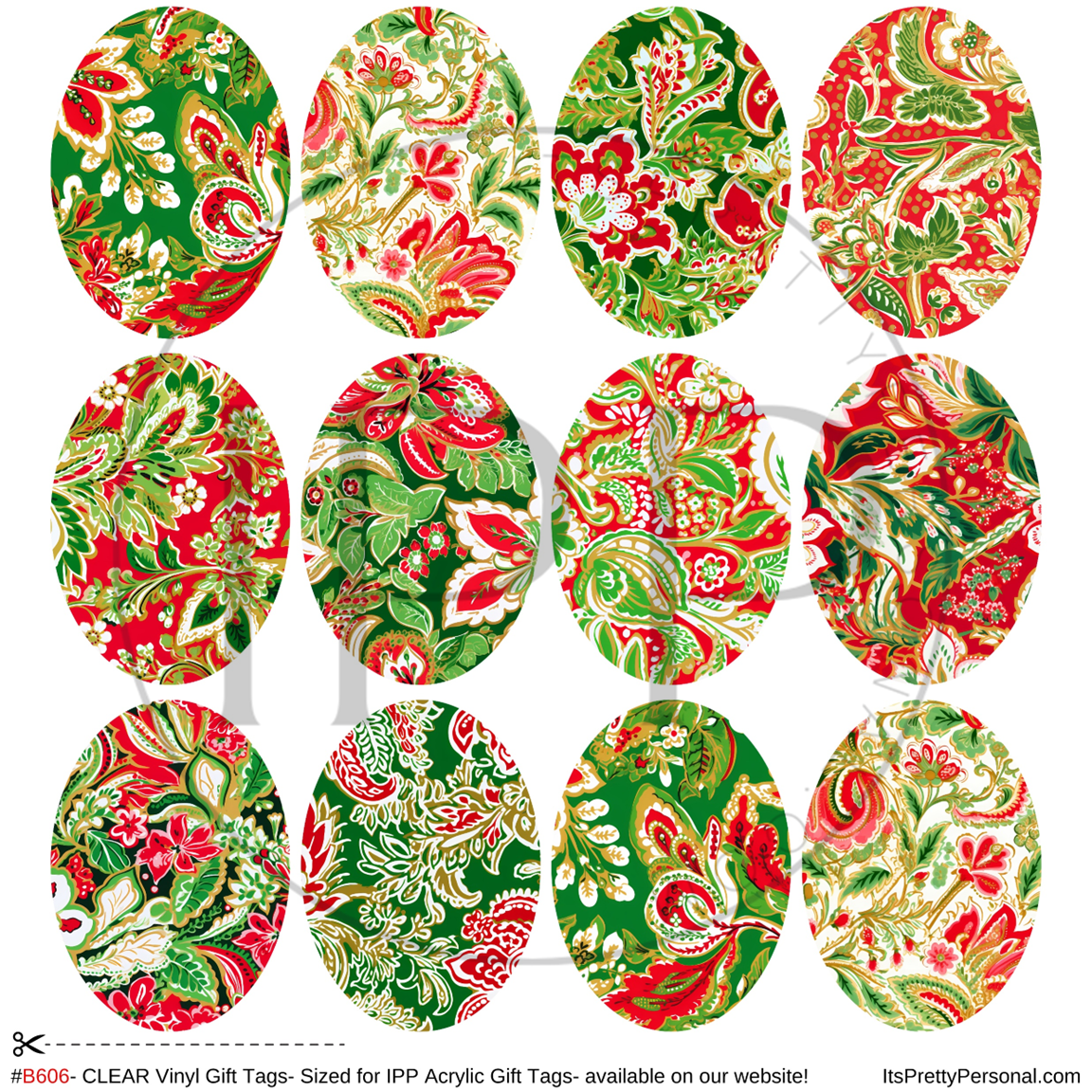 #B606-CLEAR Vinyl Gift Tag Helper Sheet-Green and Red Floral-12x12 CLEAR Pattern Vinyl