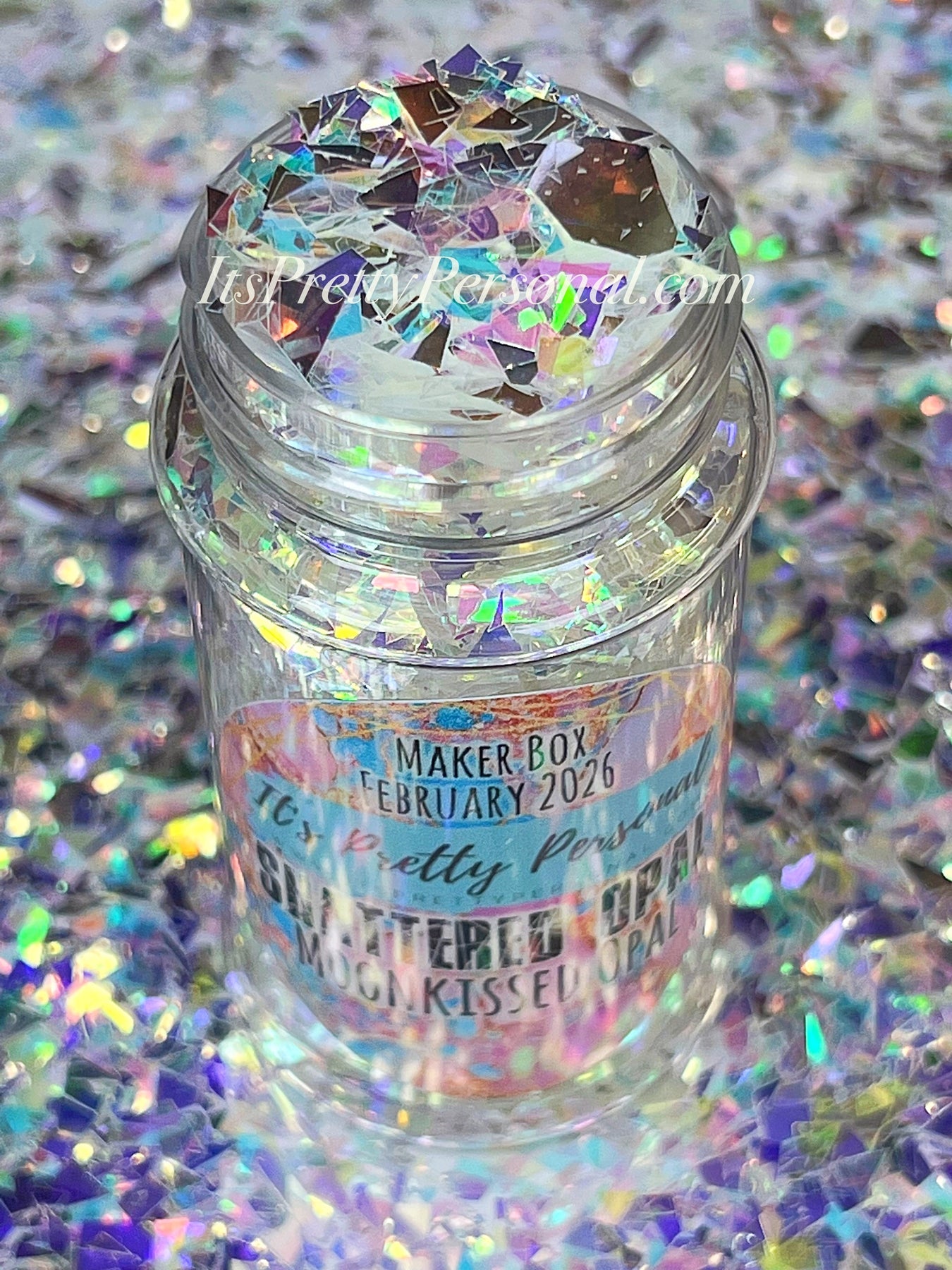 Each shaker is packed with large, shattered polyester film opal flakes that reflect light in the most dreamy, multidimensional way — think holographic shards, icy opal flashes, and iridescent confetti brilliance all in one.