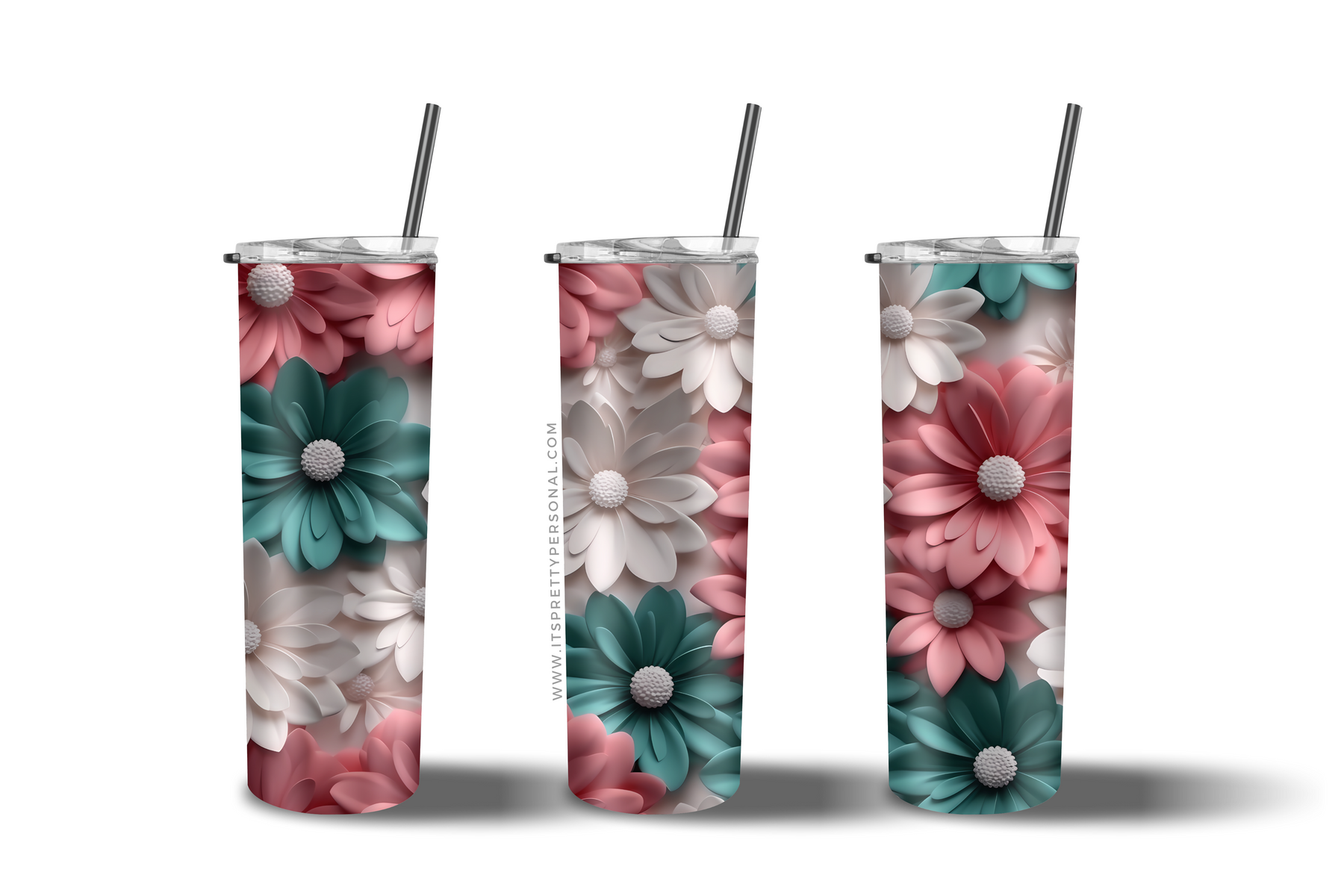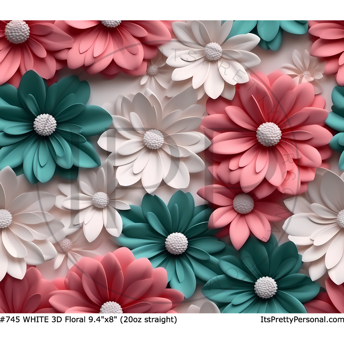 #745 WHITE- 20oz -3D Flowers 9.4" x 8" Pattern Vinyl Wrap