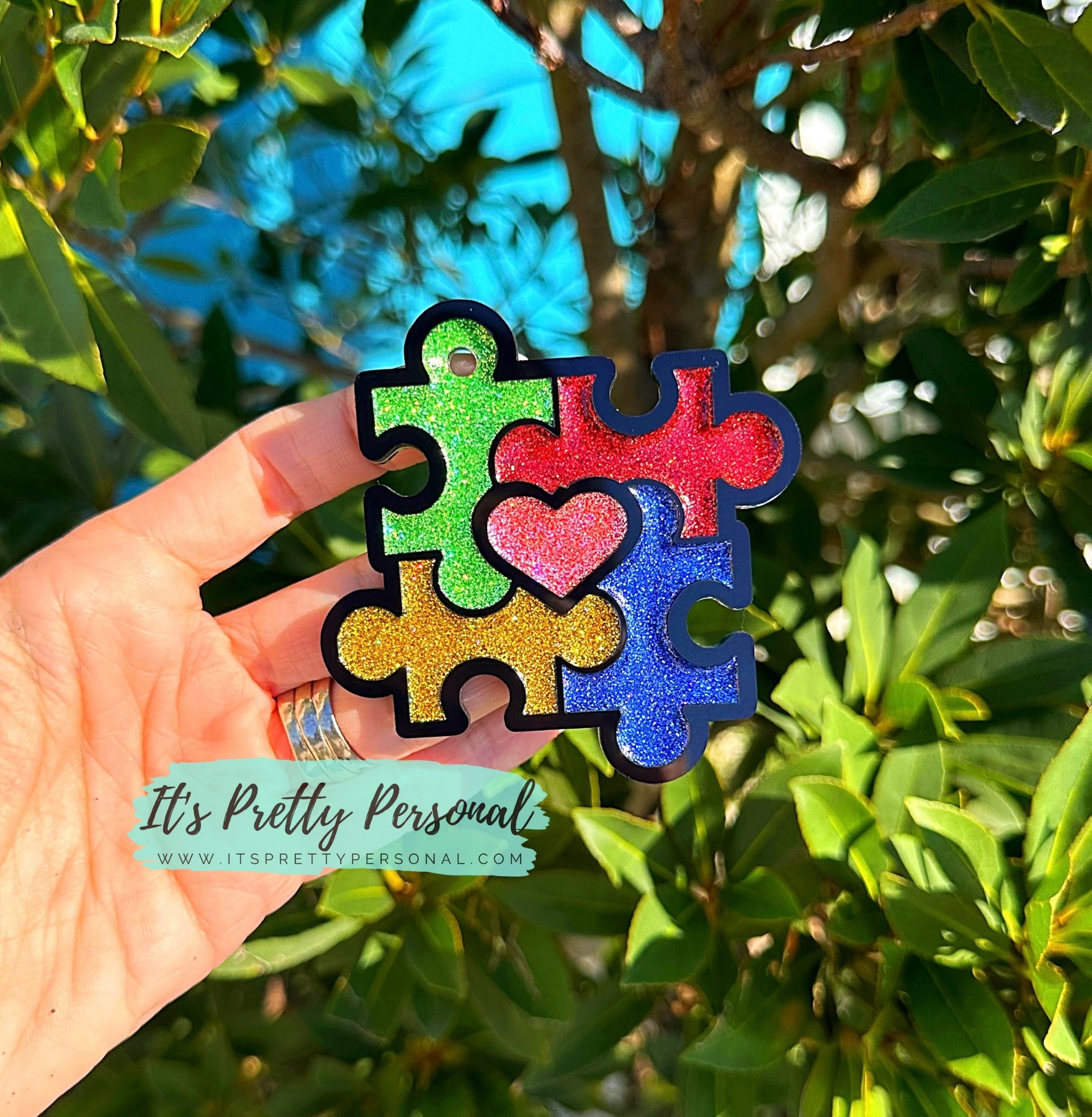 Create meaningful, eye-catching designs with our Puzzle Piece Acrylic Kit, featuring a clear acrylic backing paired with a black outline overlay of four puzzle pieces and a heart. This versatile design is perfect for autism awareness projects, best friend sets, memory pieces, and more.