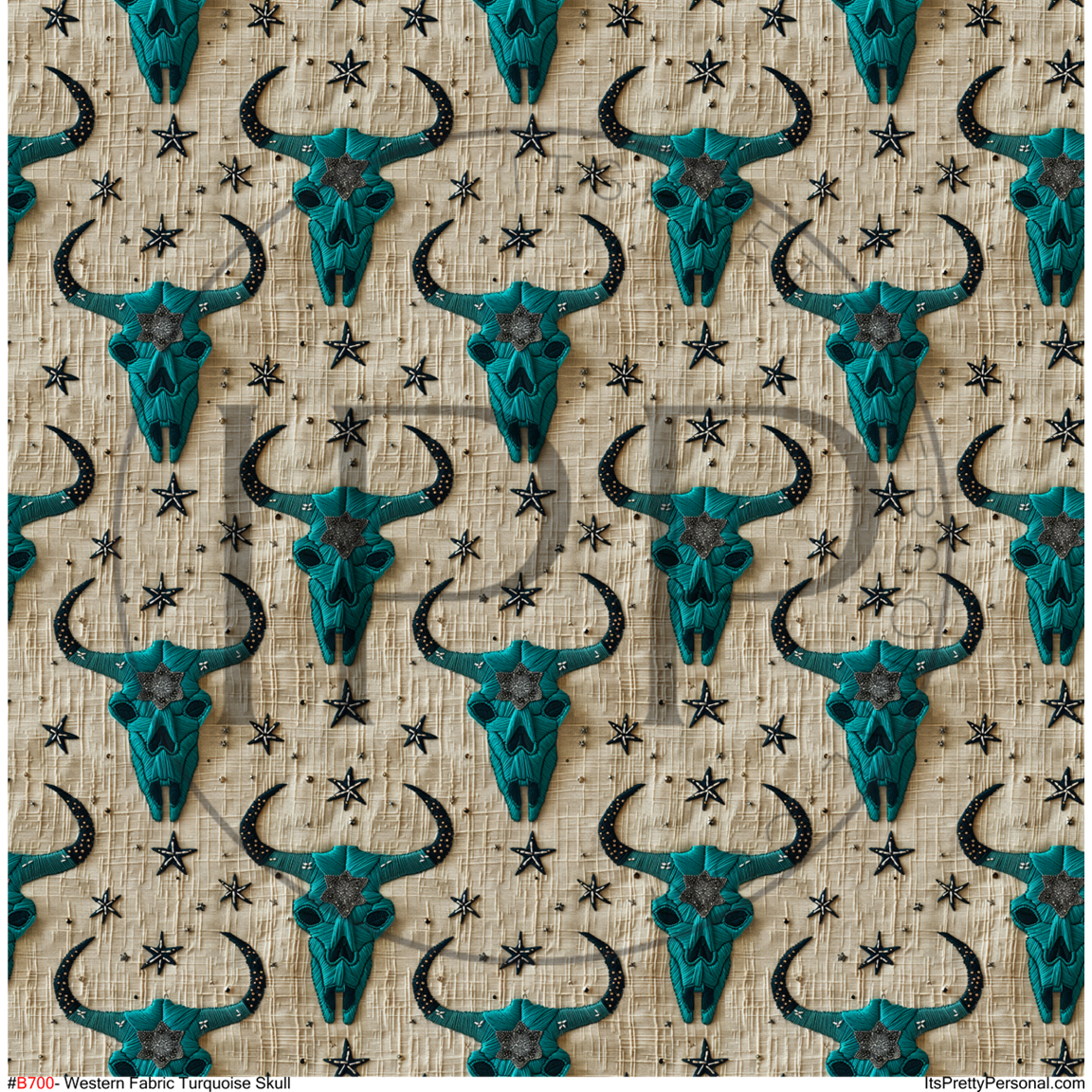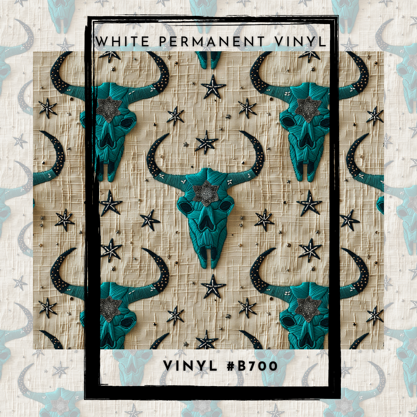 #B700- Western Fabric Turquoise Skull -12x12 Pattern Vinyl
