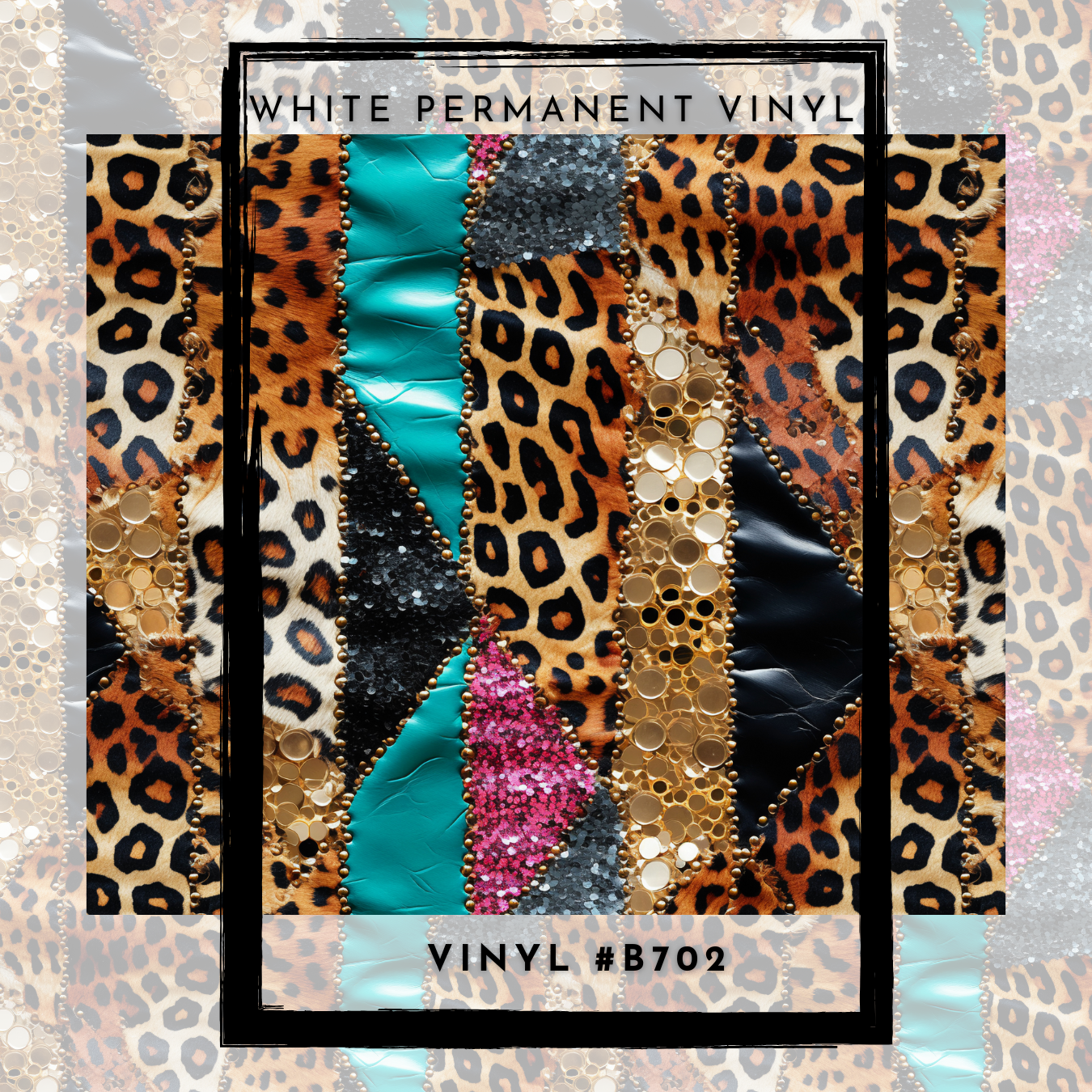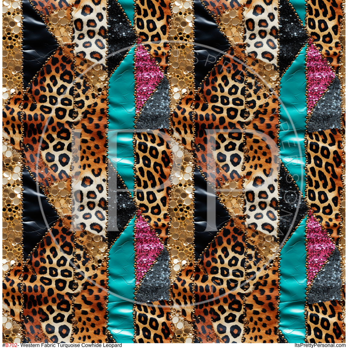 #B702- Western Fabric Turquoise Cowhide Leopard -12x12 Pattern Vinyl
