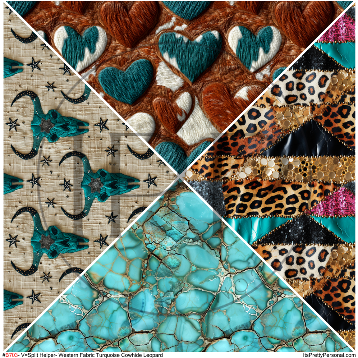 #B703-V-Split Helper-Western Turquoise Cowhide Leopard- 12x12 Pattern Vinyl