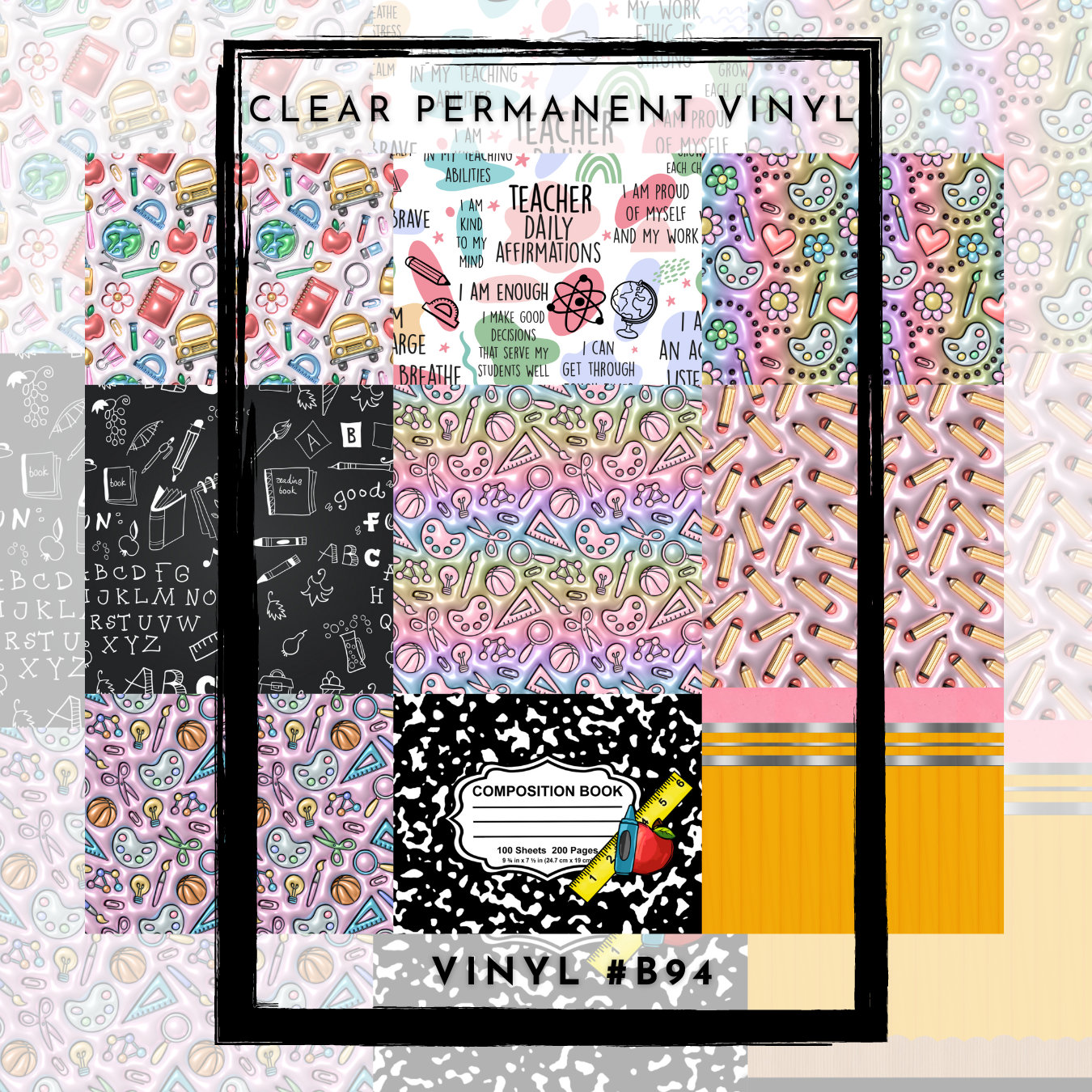*This pattern is printed REVERSED so when using clear vinyl behind acrylic, writing will show in the correct direction.