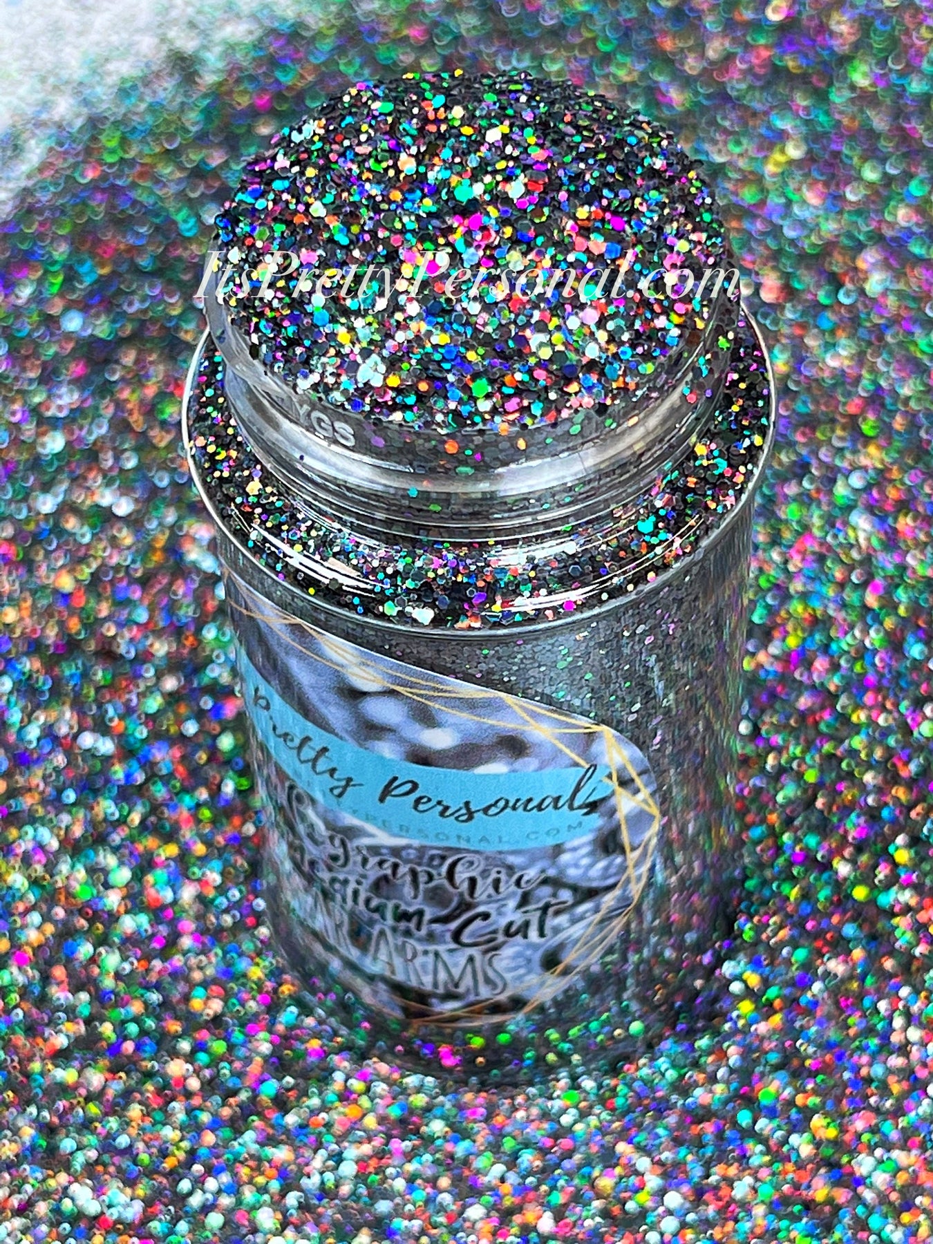 SCHMedium Cut- "Bear Arms" -Holographic Gunmetal Glitter