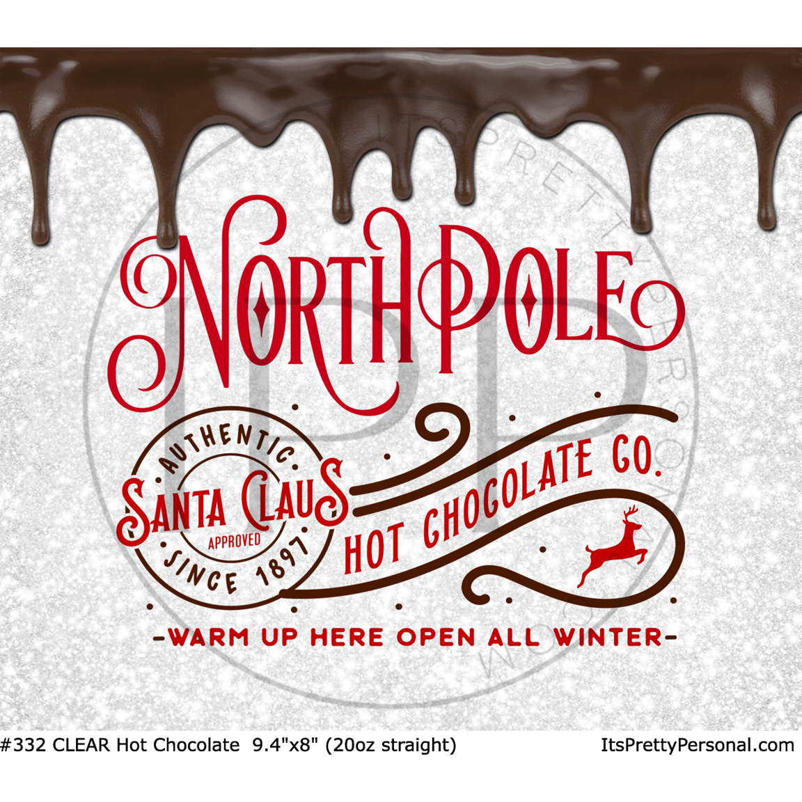 #332 CLEAR 20oz- Classic Christmas-Hot Cocoa- 9.4" x 8" Pattern Vinyl Wrap