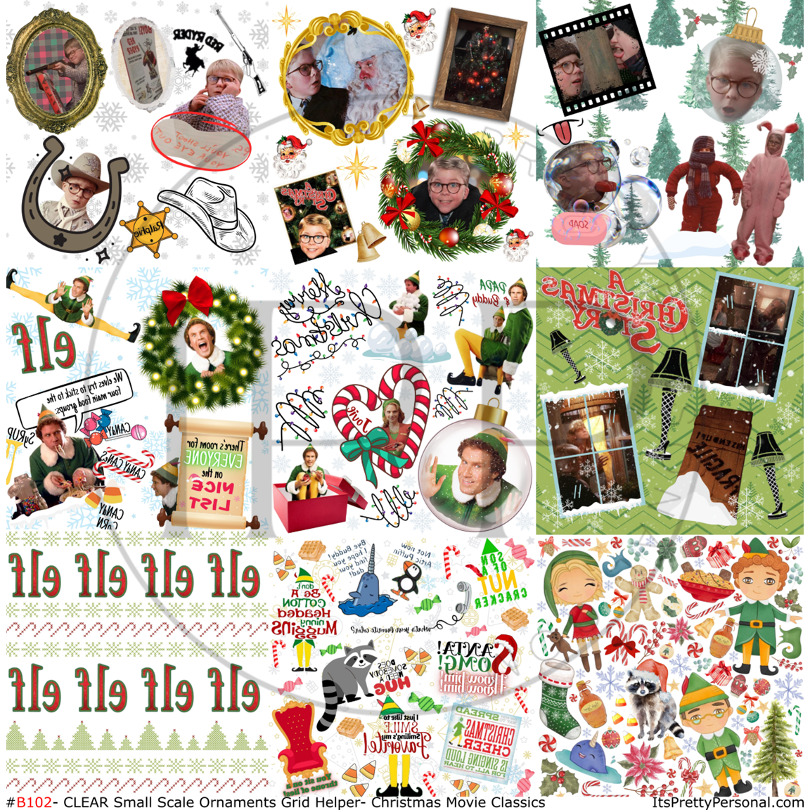 #B102- CLEAR Small Scale Ornament Grid Helper-Classic Christmas Movies- 12x12 CLEAR Pattern Vinyl