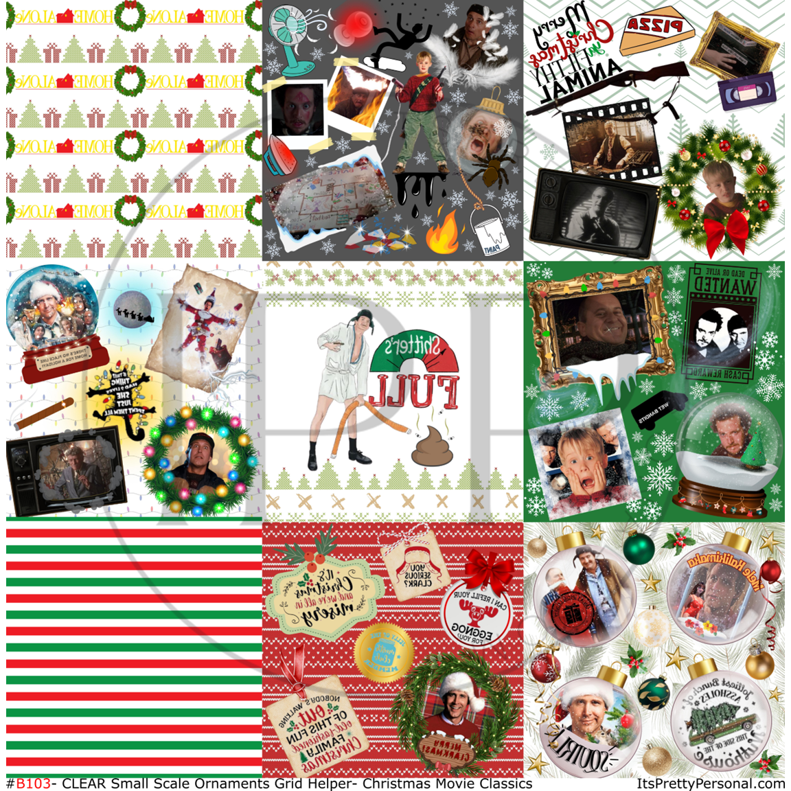 #B103- CLEAR Small Scale Ornament Grid Helper-Classic Christmas Movies- 12x12 CLEAR Pattern Vinyl