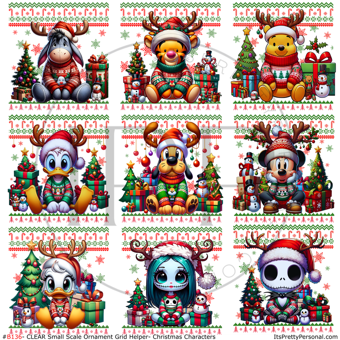#B136- CLEAR Small Scale Ornament Grid Helper-Christmas Characters-12x12 CLEAR Pattern Vinyl