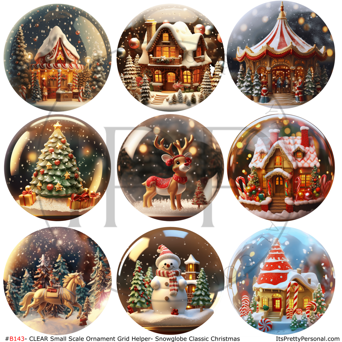 #B143- CLEAR Small Scale Ornament Grid Helper-Snow globe Classic Christmas-12x12 CLEAR Pattern Vinyl