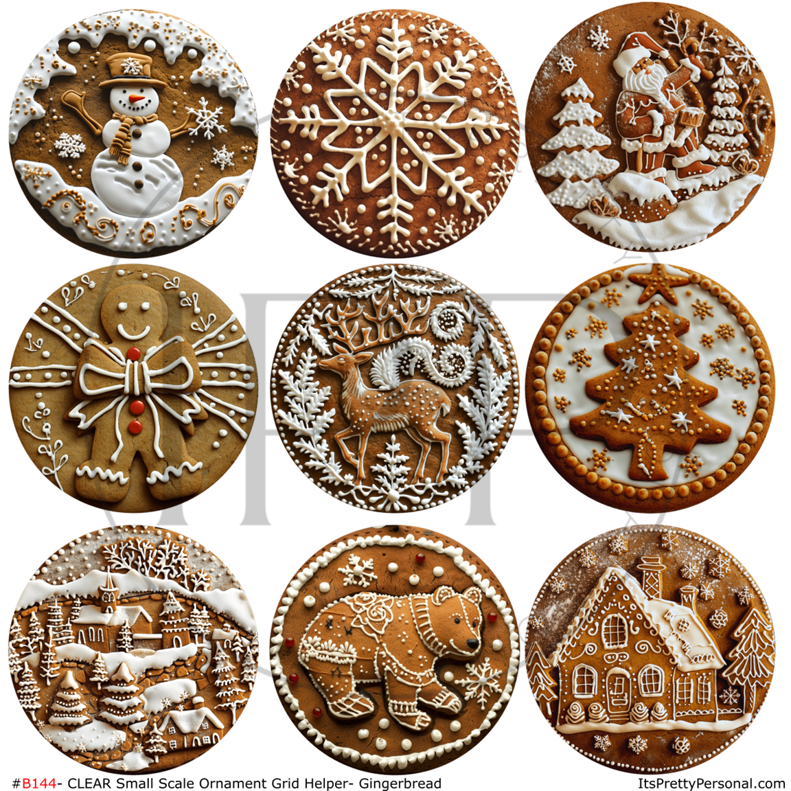 #B144- CLEAR Small Scale Ornament Grid Helper-Gingerbread Christmas-12x12 CLEAR Pattern Vinyl