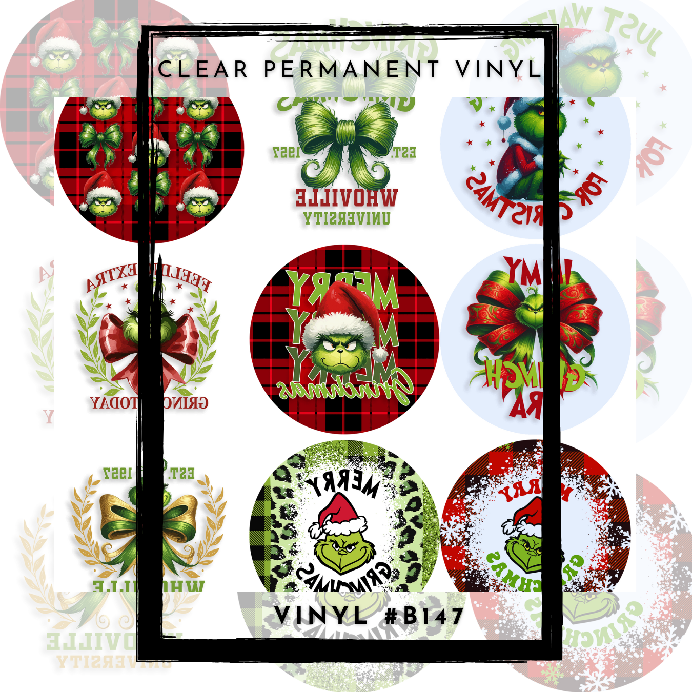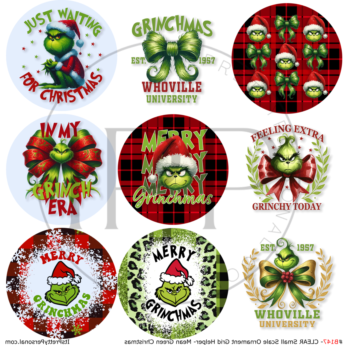 #B147- CLEAR Small Scale Ornament Grid Helper-Mean Green Christmas- 12x12 CLEAR Pattern Vinyl
