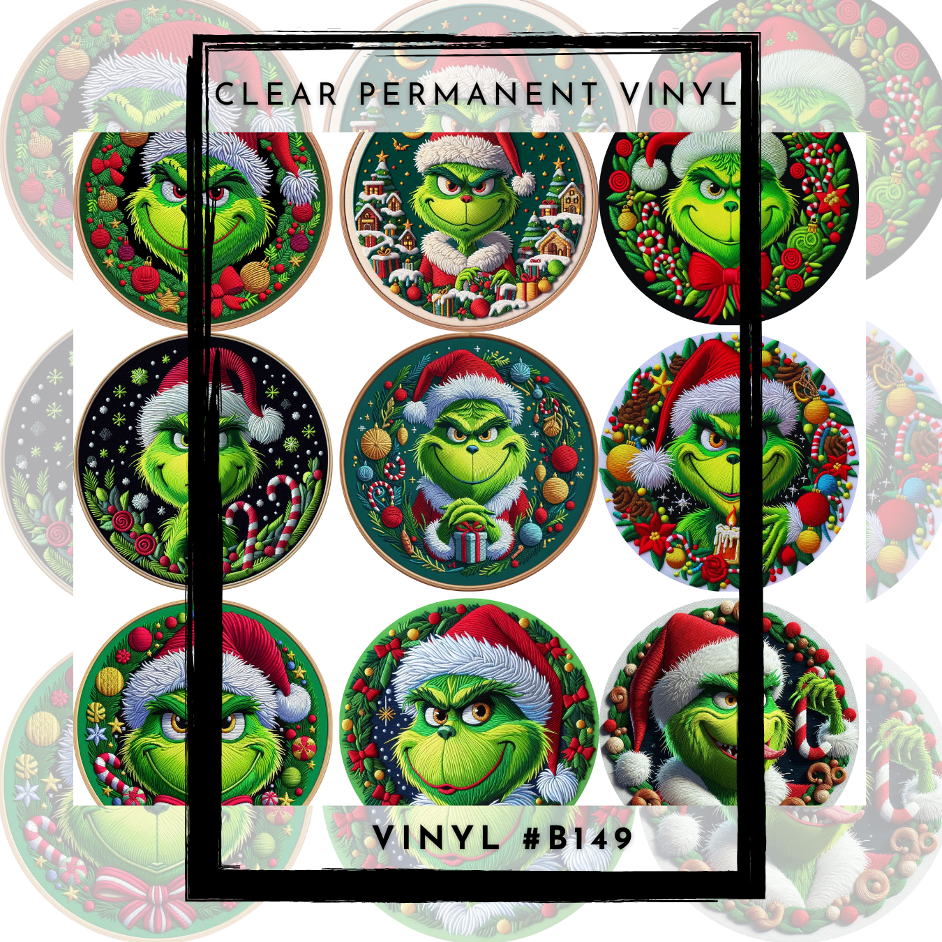 #B149- CLEAR Small Scale Ornament Grid Helper-Mean Green Christmas Faux Embroidered - 12x12 CLEAR Pattern Vinyl