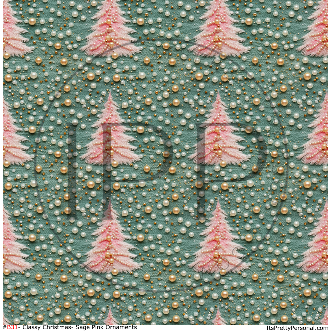 #B31-Classic Christmas Sage & Pink Pearl Christmas Trees- 12x12 Pattern Vinyl