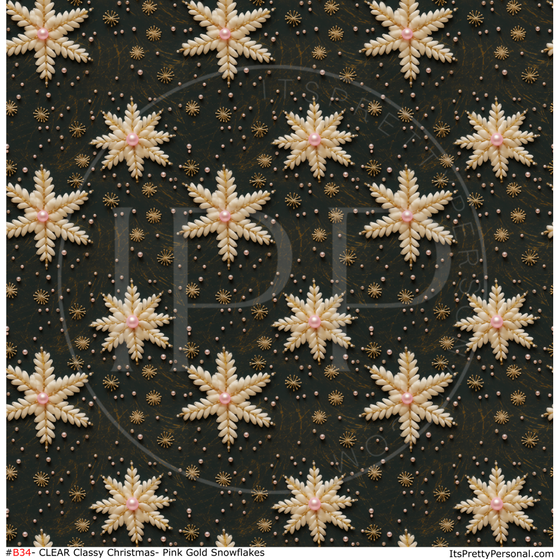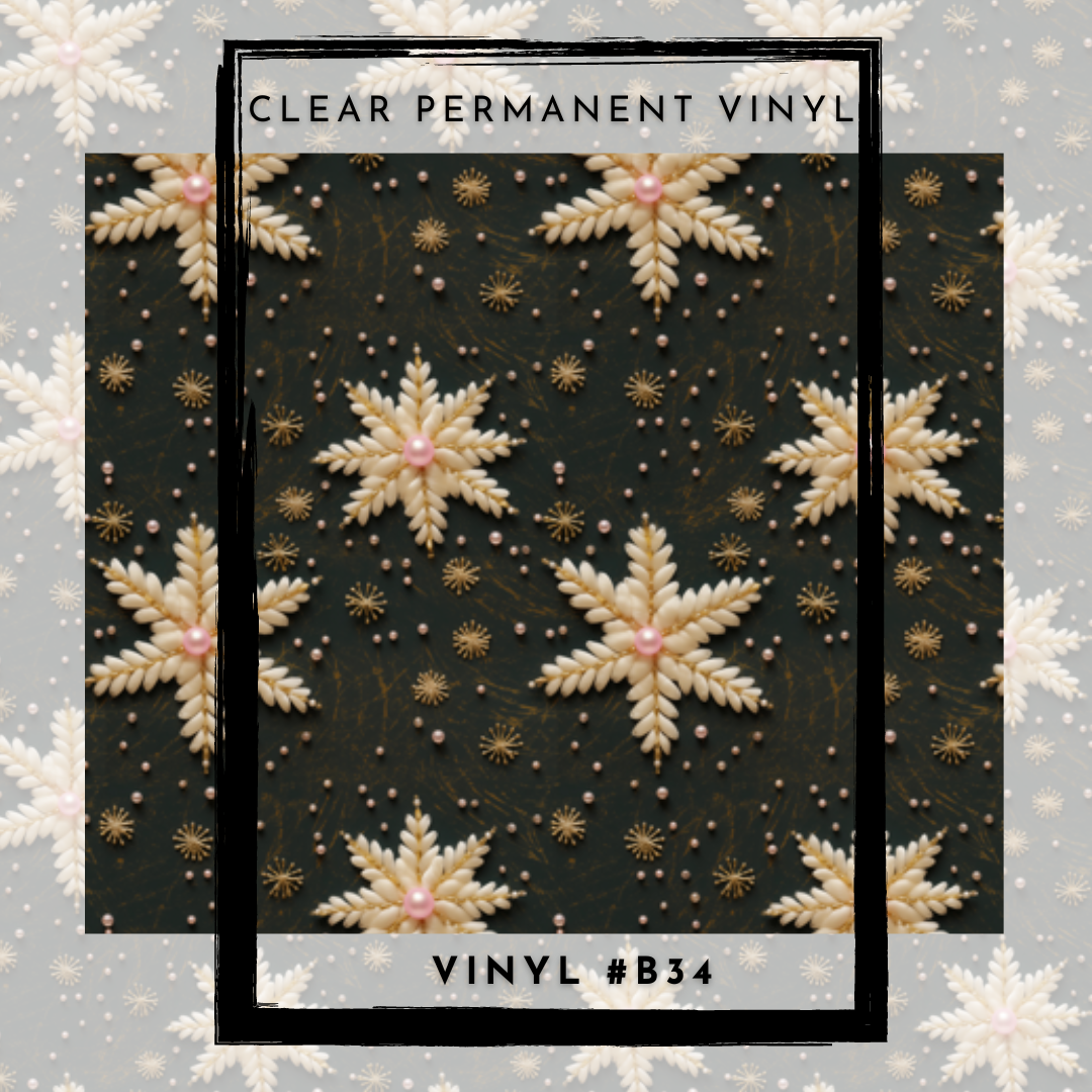 #B34- CLEAR Classic Christmas Gold & Pearl Christmas Snowflakes- 12x12 Pattern Vinyl