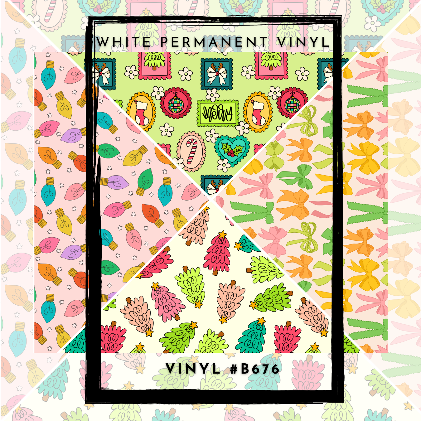 #B676-V-Split Helper-Playful Non-Traditional Green Pink Orange Christmas- 12x12 Pattern Vinyl