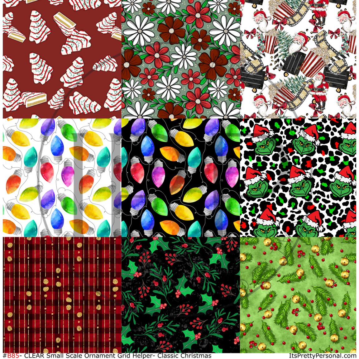 #B85- CLEAR Small Scale Ornament Grid Helper-Classic Christmas- 12x12 CLEAR Pattern Vinyl