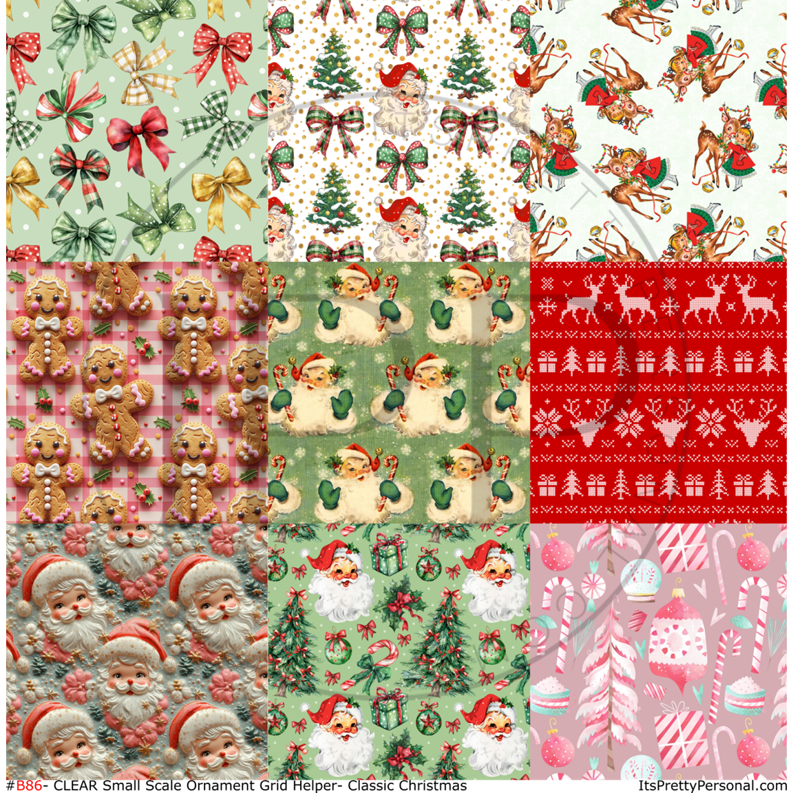 #B86- CLEAR Small Scale Ornament Grid Helper-Classic Christmas- 12x12 CLEAR Pattern Vinyl