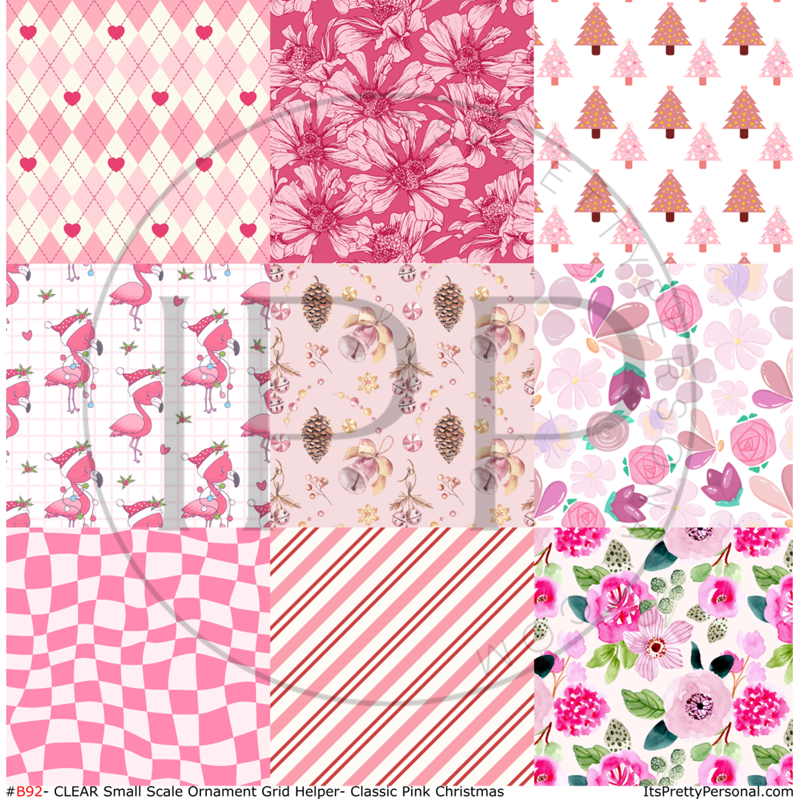 #B92- CLEAR Small Scale Ornament Grid Helper-Classic Pink Christmas- 12x12 CLEAR Pattern Vinyl