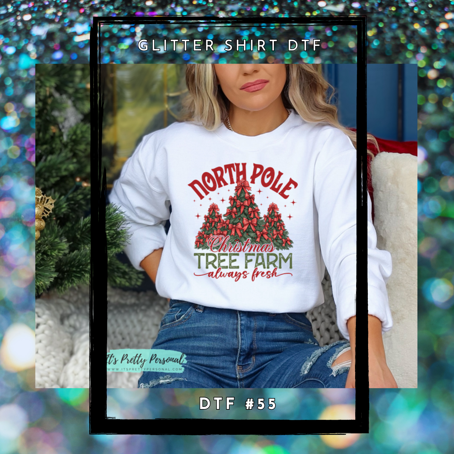 #55 GLITTER SHIRT DTF-North Pole Christmas Tree Farm *read listing.